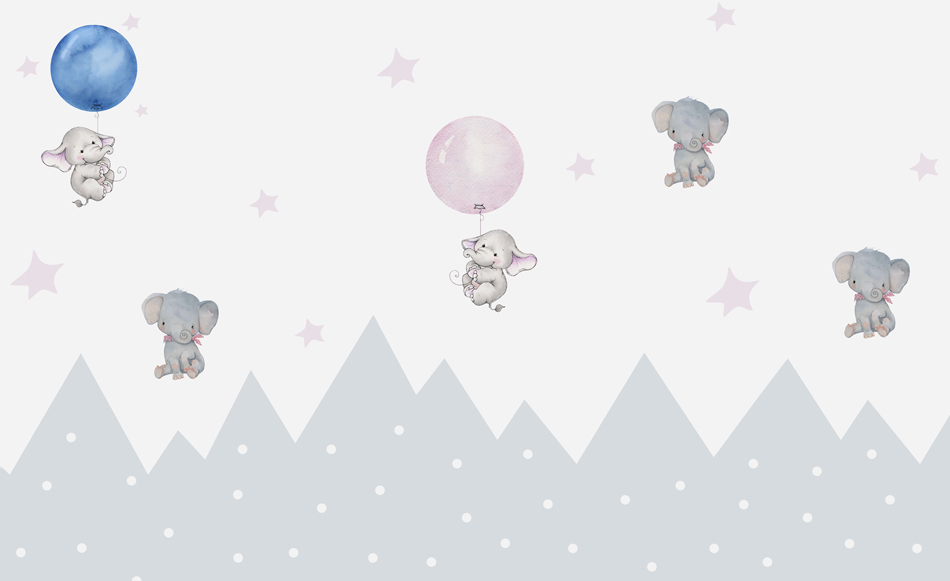 Sevimli filler ve renkli balonlarla tasvir edilmiş bu poster duvar kağıdı, çocuk odalarına neşe ve eğlence dolu bir atmosfer katıyor. Yumuşak renk tonları ve sevimli karakterlerle dolu bu tasarım, çocukların hayal gücünü besleyen huzurlu bir ortam yaratır.