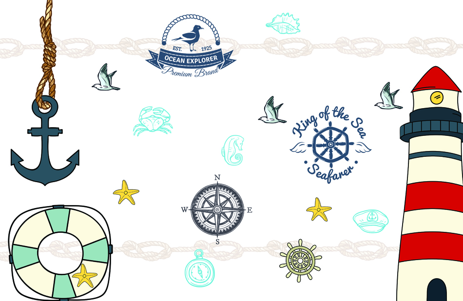 Denizcilik temasıyla tasarlanmış bu poster duvar kağıdı, çocuk odalarına macera dolu bir deniz atmosferi katıyor. Fener, çapa, pusula ve deniz kabukları gibi detaylarla süslenen bu tasarım, deniz ve okyanusların büyüleyici dünyasını çocukların odalarına taşır.