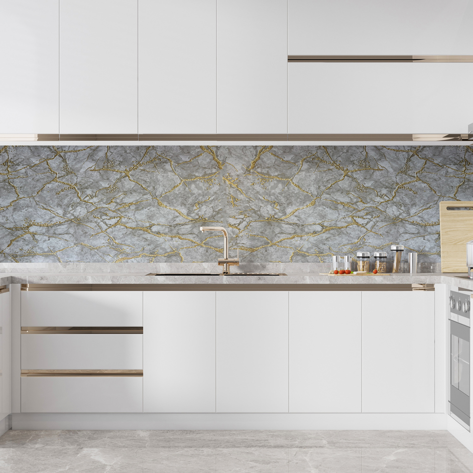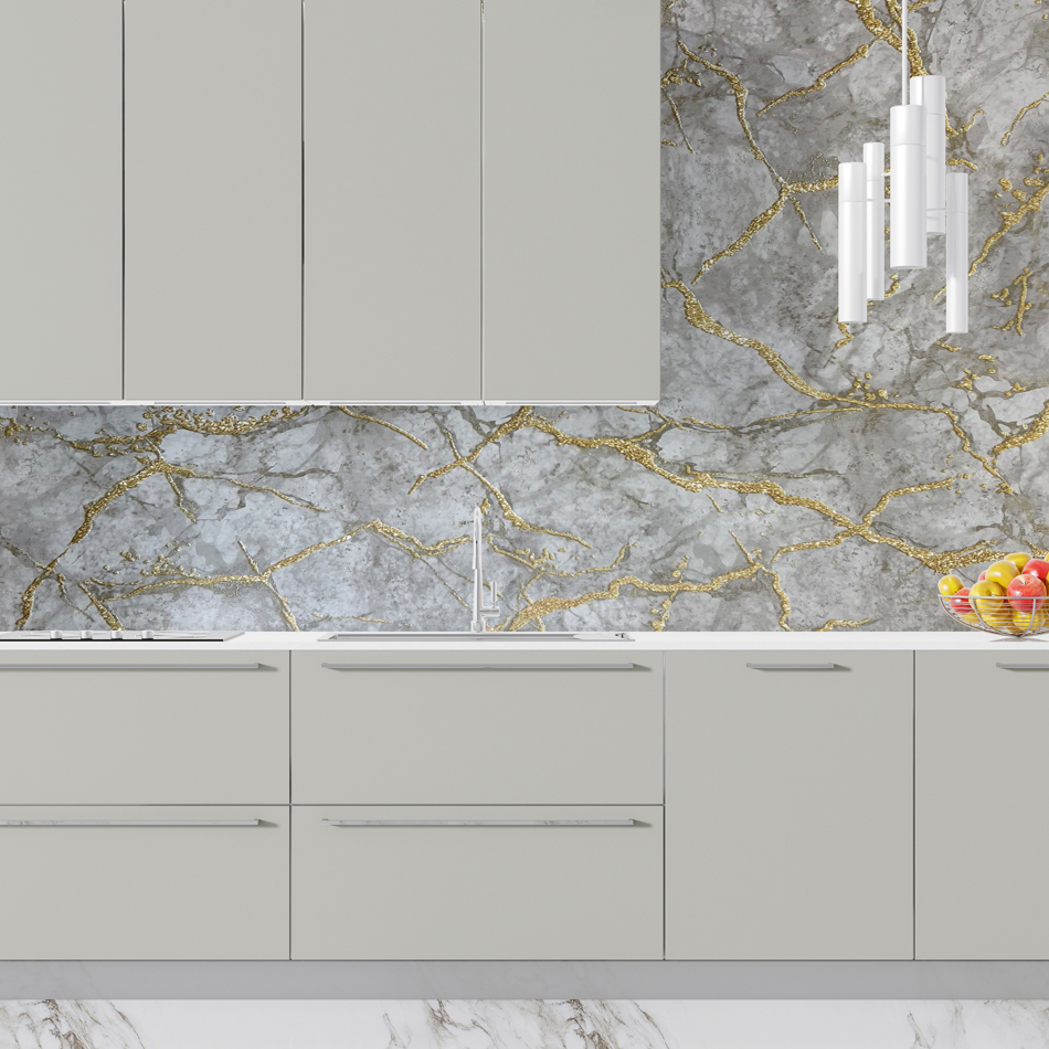 SF 624 Gold ve Bronz Damarlı Doğal Mermer Görünümlü Dolap ve Tezgah Yapışkanlı Folyo